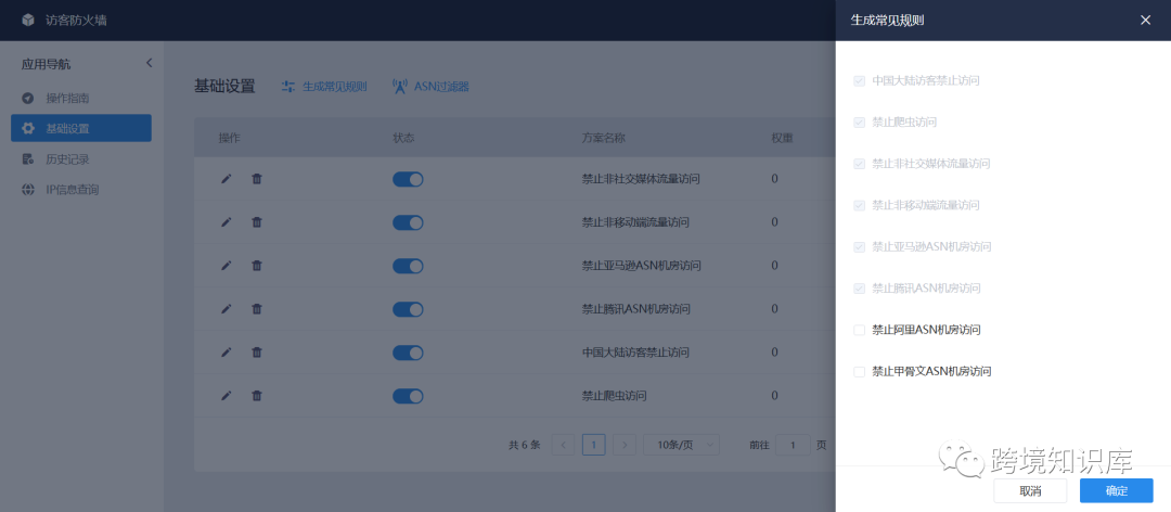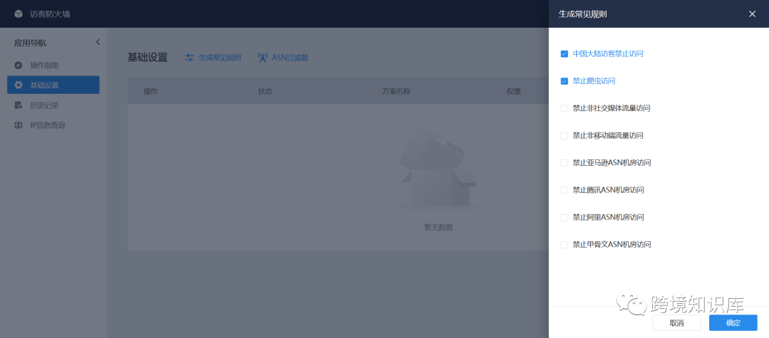 查看防火墙是否生效,请新打开其他浏览器或无痕查看,当前浏览器直接查看不会生效。生成常见规则: