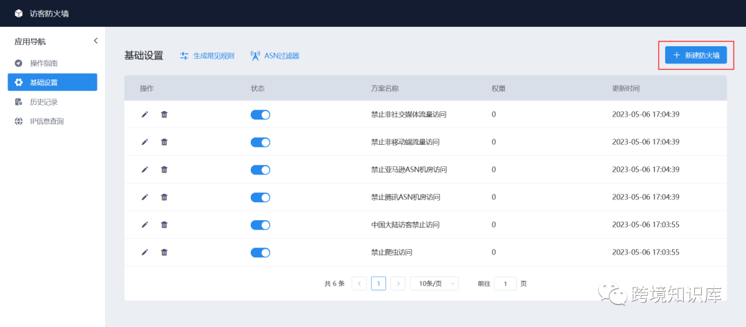 查看防火墙是否生效,请新打开其他浏览器或无痕查看,当前浏览器直接查看不会生效。设置防火墙需熟悉防火墙的条件与拦截原理,请仔细阅读防火墙相关操作指南;开启后立即生效