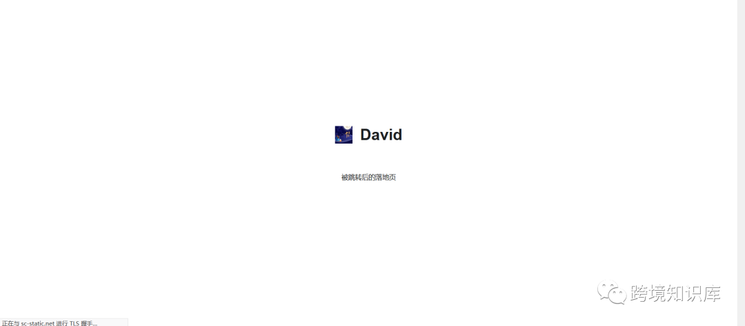 “跳转”前台显示效果示意,触发后显示页面会显示提示页面3s后跳转,例如“即将跳转”,如下是新的落地页