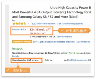 另外,B2C卖家或者传统制造企业想要触及Amazon Business业务,可以通过税务合规后免费使用亚马逊增值税计算服务(VAT Calculation Service,简称VCS)的方式,该产品是亚马逊为卖家推出的免费发票工具。类似Prime徽章,它不仅可提升卖家产品的整体曝光率和企业资质,详情页面的不含税价格设置,更能提升订单的成交率,同时具有自动开具发票的功能,进一步节省了卖家的人工开支提升效率。