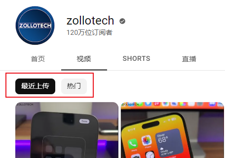 先来说一个最最最明显的改变,细心的网友会发现,频道页面的导航条更细分了,以前只有单独的[视频],现在将[shorts]&[直播]从视频中拎出来,此举真的非常方便marketers快速筛选博主。并且[视频]页面下新增按钮”最近“和”热门“排序,为该功能点赞!