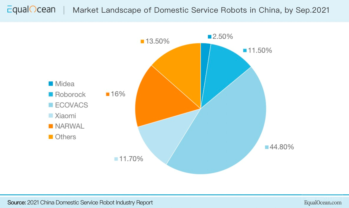 目前,这一领域已经有多个领域的玩家涌入,如专业机器人品牌ECOVACS(科沃斯)、美的(Midea)、小米等。