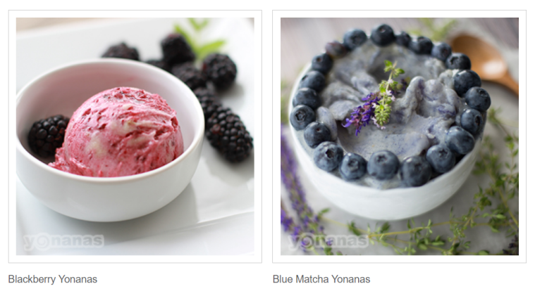 Yonanas,国际知名水果冰淇淋机品牌,以新鲜水果为制作材料,整个制作过程中无需添加任何除水果之外的东西,运用物理机械原理将其制造成为冰淇淋,具有真正意义上的纯天然健康食品。品牌官网为:http://yonanas.com/,以下是在其官网上部分产品截图: