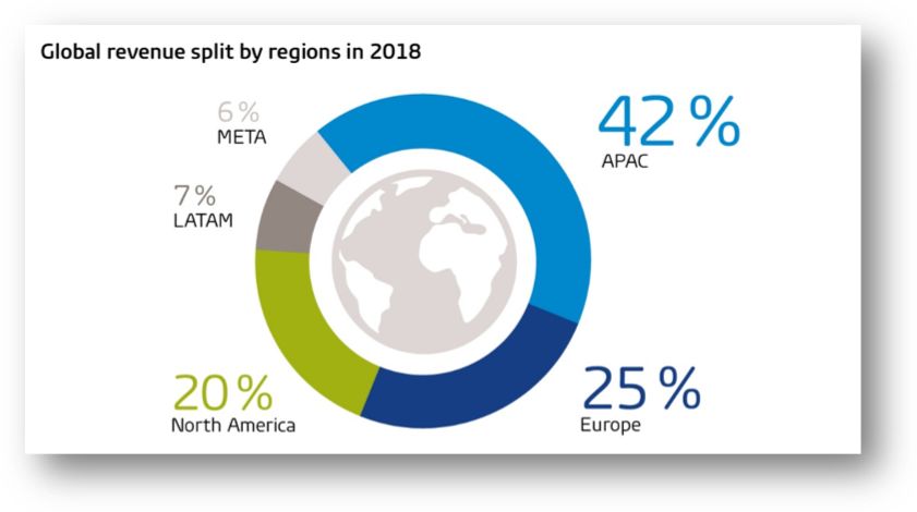 从区域分布来看,亚太是全球最大的技术型消费产品市场。其次为欧洲和北美,作为ebay的主力市场,他们的合并份额约占全球市场的一半(20%+25%=45%)。