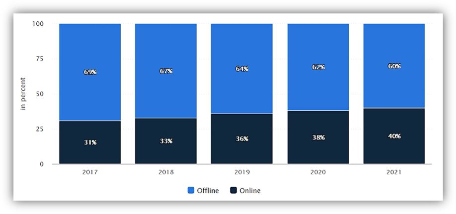 与此同时,我们脑海中家电产品通常由实体商店出售的刻板印象正发生着巨大的改变,Statista数据显示2019年北美市场超过三分之一的家用电器经由网络购买,而这一数字在2年后将上升为40%。