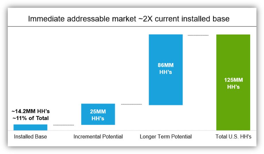 扫地机器人未来的成长空间依然巨大,即使在渗透率最高的美国市场,目前也仅有1,420万个家庭配备了扫地机器人,为全美1.25亿个家庭的11%。