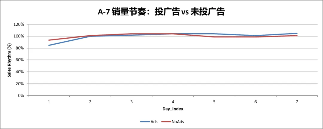 (7天BD中,投广告的BD VS 不投广告的 BD 销量节奏)