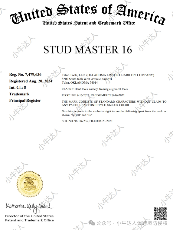 警惕!TRO案件避雷第70期:Stud Master 16商标