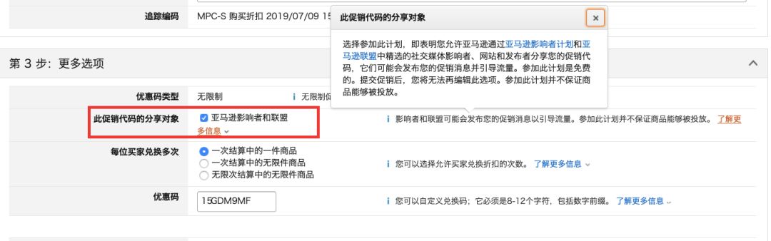 简而言之,按照默认的勾选了以“亚马逊影响者和联盟”作为促销代码的分享对象,你无需推广,推广的活动由亚马逊来做,免费,只是不保证效果,效果可能好,也可能差。