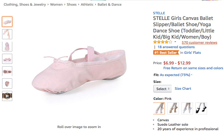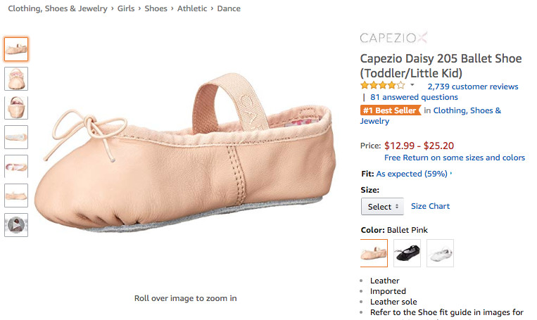 可以看到,在上周Clothing, Shoes & Jewelry品类的Best Seller榜单中, 骆探长(shujumai.com)在上期分析中谈及的潜力产品——儿童舞鞋榜单表现突出。其中,来自品牌Capezio的儿童芭蕾舞鞋在8月30日成功登顶Best Sellers榜单,并在后续的三天中持续蝉联榜首,位列商品综合排名首位;