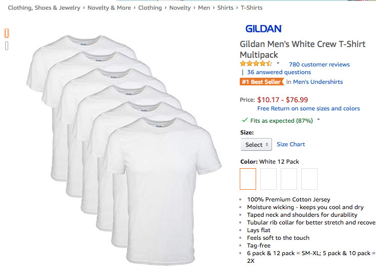 可以看到,在上周Clothing, Shoes & Jewelry品类的Movers & Shakers榜单中, 来自品牌Gildan的白色船员T恤多件套产品在激烈的榜单竞争中脱颖而出,于7天内五次跻身Movers & Shakers榜单,并在9月2日成功重返当日Movers & Shakers榜单第二,位居商品综合排名首位。
