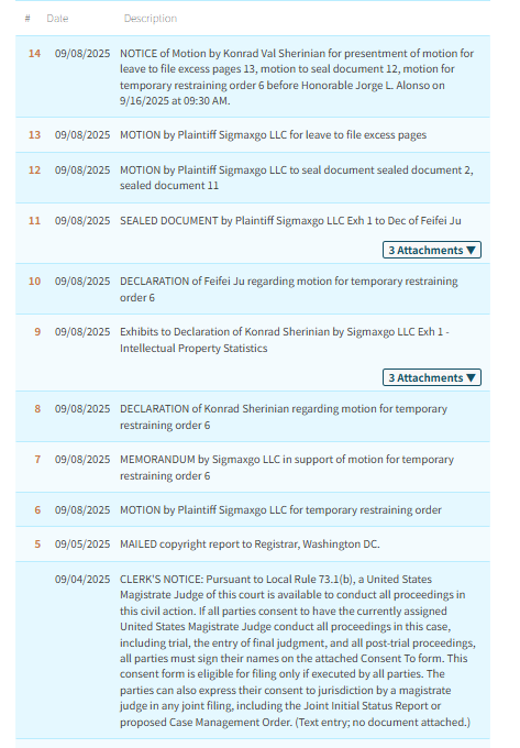 此案为版权维权,共涉及14张版权作品,注意!原告近两年已发起5次案件,侵权风险极高!以下是涉及版权图片的具体信息,未经授权不得擅自使用,跨境卖家尽快检索下架,避免TRO侵权风险!