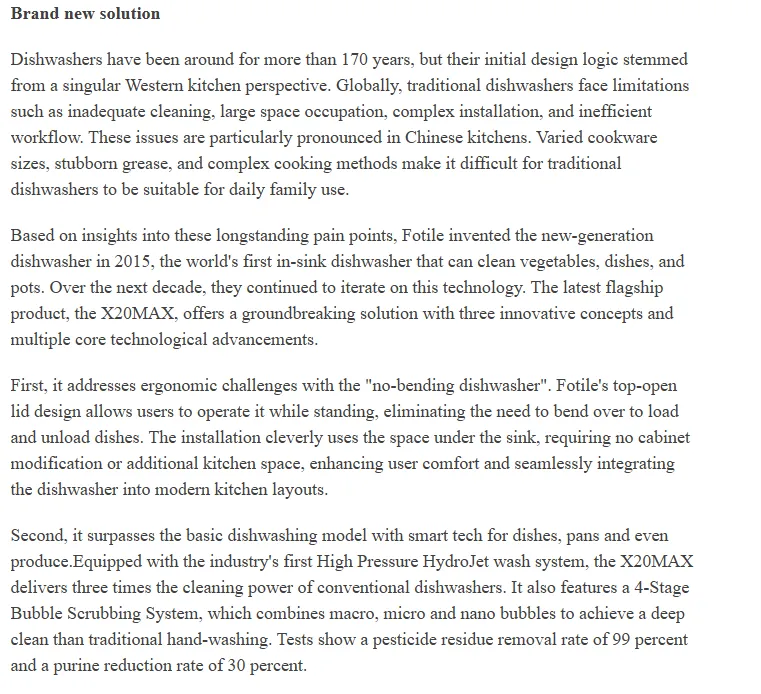 自 2025 年起,方太推出的 X20MAX 洗碗机在全球社媒上形成“#ChineseDishwasher”话题传播,该话题在 TikTok、Instagram 等平台已累计播放量突破 1000 万次,成为厨房科技创新类话题热搜内容之一。