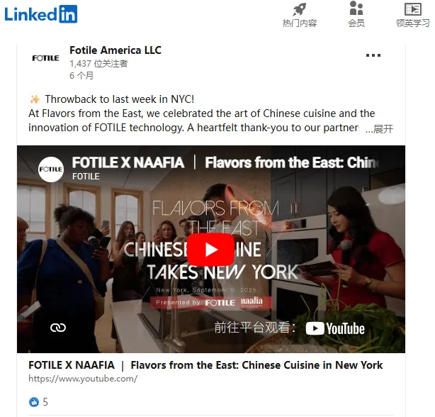 LinkedIn 则聚焦B端传播,精准发布企业动态、行业技术洞察、品牌合作信息及招聘内容,触达北美建筑设计师、室内设计师、地产采购负责人等专业决策圈层,为工程渠道拓展与品牌专业度打造筑牢基础。