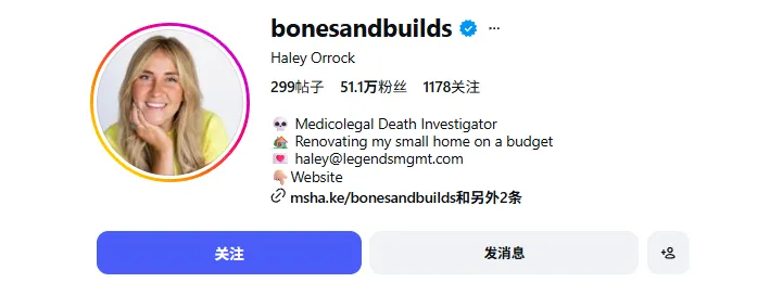 垂类达人二:@bonesandbuilds(粉丝51.1万)