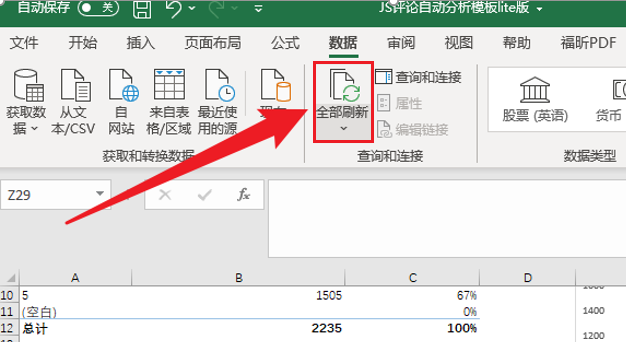 2 .把刚才下载好的评论,复制粘贴导入评论自动分析模板(联系JS产品顾问免费领取)