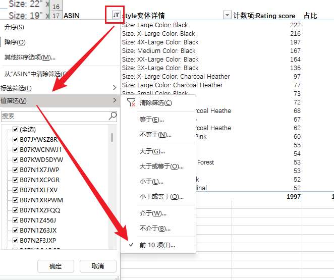 小技巧1:如果变体过多,表格太长,可以在数据透视表里设置只展示前多少个变体。