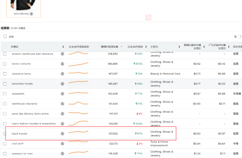 2 .查看排位靠前的关键词是否包含变体型号、颜色、款式、材质等信息:我们可以看到这个产品被亚马逊收录的关键词里,黑色black关键词是排名靠前的。