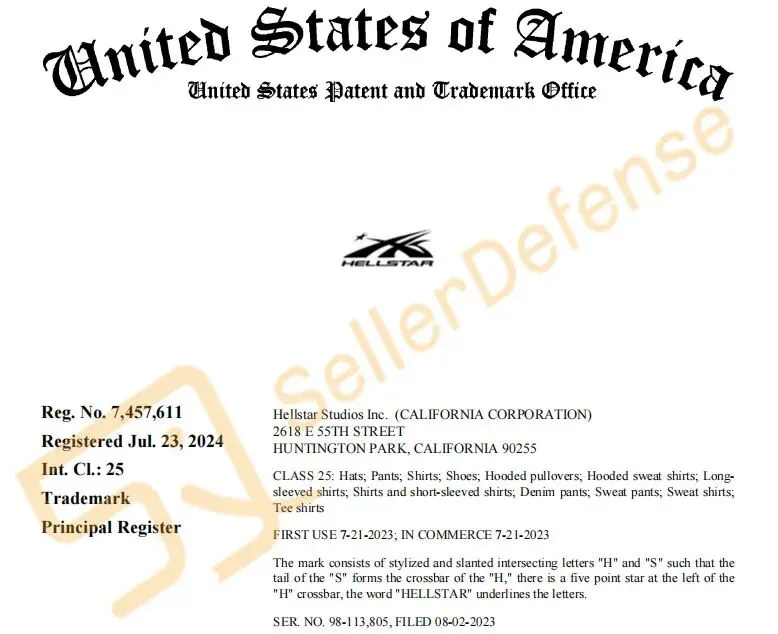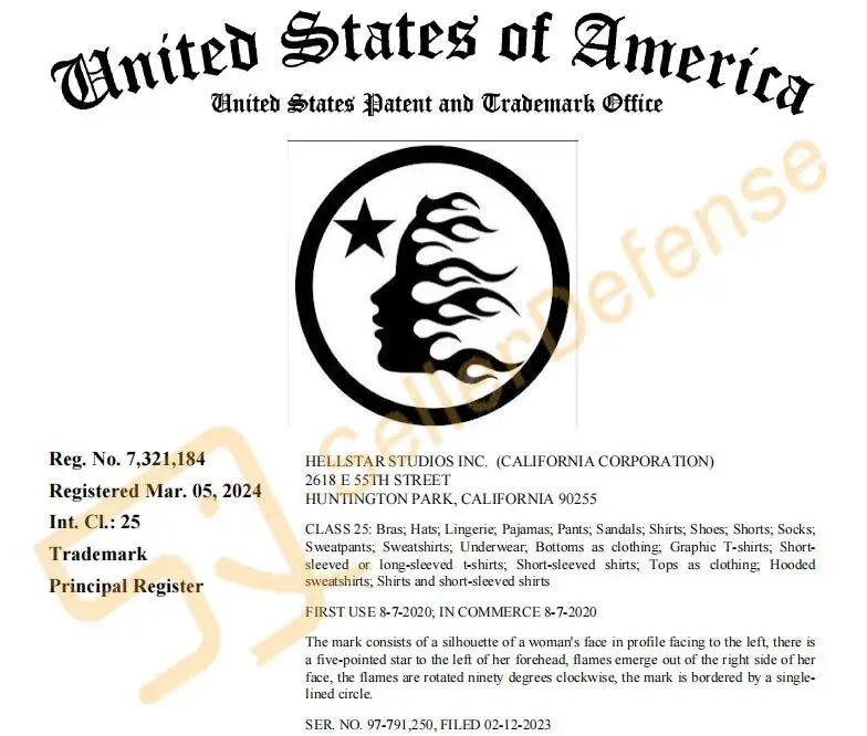 原告 Hellstar 是一个源自美国洛杉矶的街头服饰品牌,成立于2020年。以其大胆、前卫和带有反叛精神的设计风格而闻名,是近年来街头潮流领域崛起最快的新兴品牌之一。以下图文商标注意排查避雷!