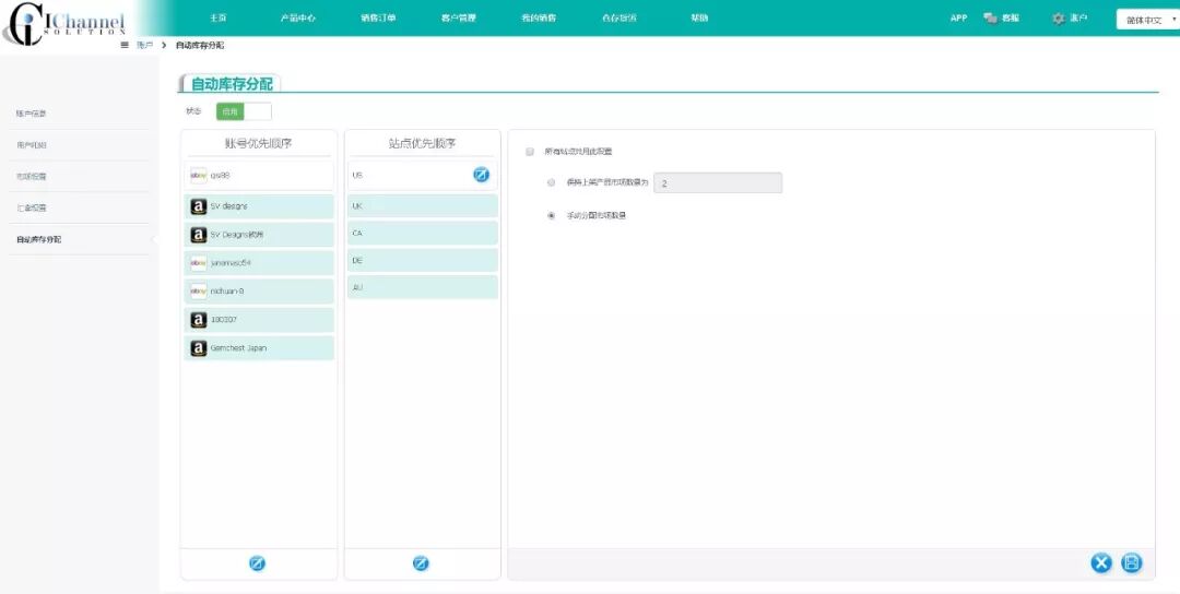 这一项设置可以在多平台、多账户同时进行,有效防止超买或断货现象。(注:在设置亚马逊FBA仓时,需要根据平台政策进行操作)