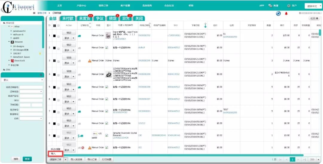 订单导入功能,不仅仅是导入系统默认的市场订单,还可以根据需求,导入其他市场订单,通过系统发货。(借用系统发货,支持独立站点,如:敦煌网、沃尔玛等)