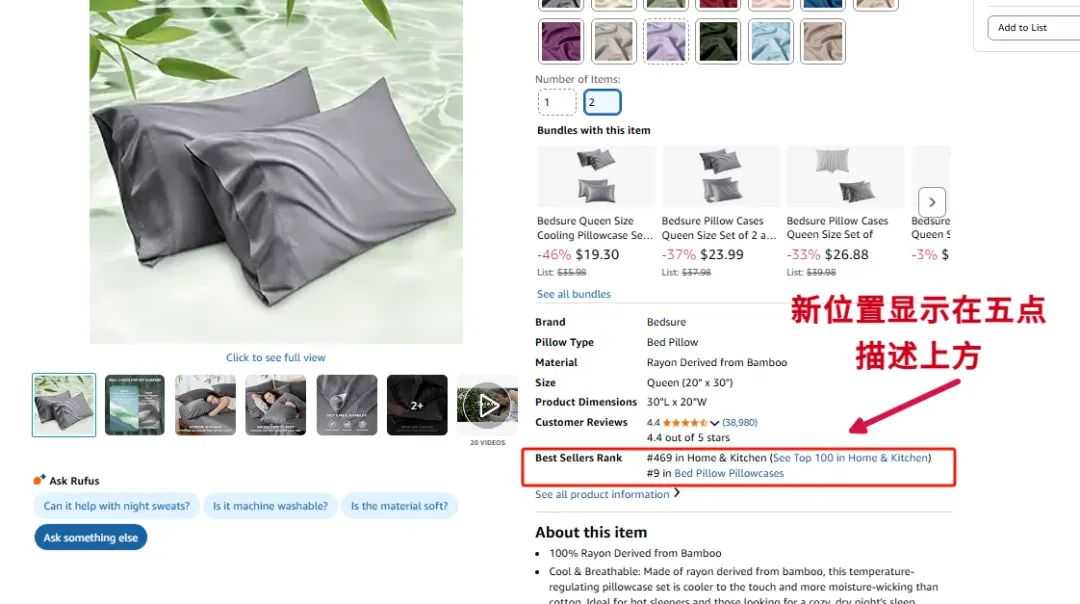 除了排名回归问题,亚马逊疑似还在持续探索新的排名显示机制。最近,有卖家敏锐地发现,类目排名的位置发生了变化,从以往页面底部那个不起眼的地方,被移到了五点描述的上方。