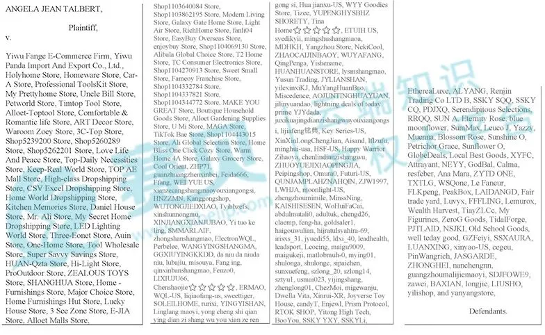目前,案件已经签署TRO禁令,被告卖家开始陆续收到法院传票。赛贝已经获取到完整被告名单,合计超250家店铺被起诉!
