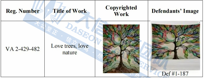 此案为版权维权,目前已有187家店铺被冻,涉及一张版权作品,版权号:VA 2-429-482,于2024年12月17日,未经授权均不可擅自使用,侵权风险极高,以下是涉及版权的具体信息,跨境卖家尽快检索下架,避免造成更大的侵权损失!