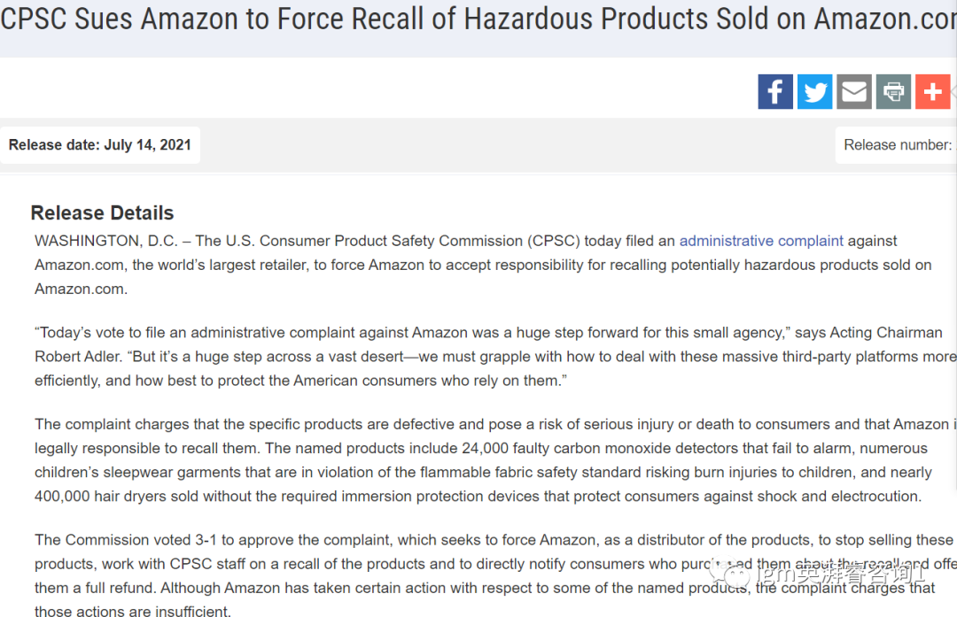 # 美国CPSC起诉亚马逊 #