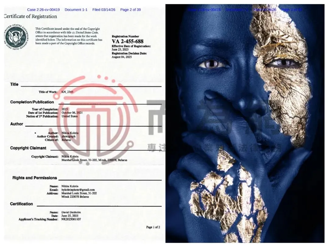 【侵权快讯】26-cv-00419 速看避雷!Ference&Keith代理摄影师NIKITA KOBRIN 19张美妆类作品发案!