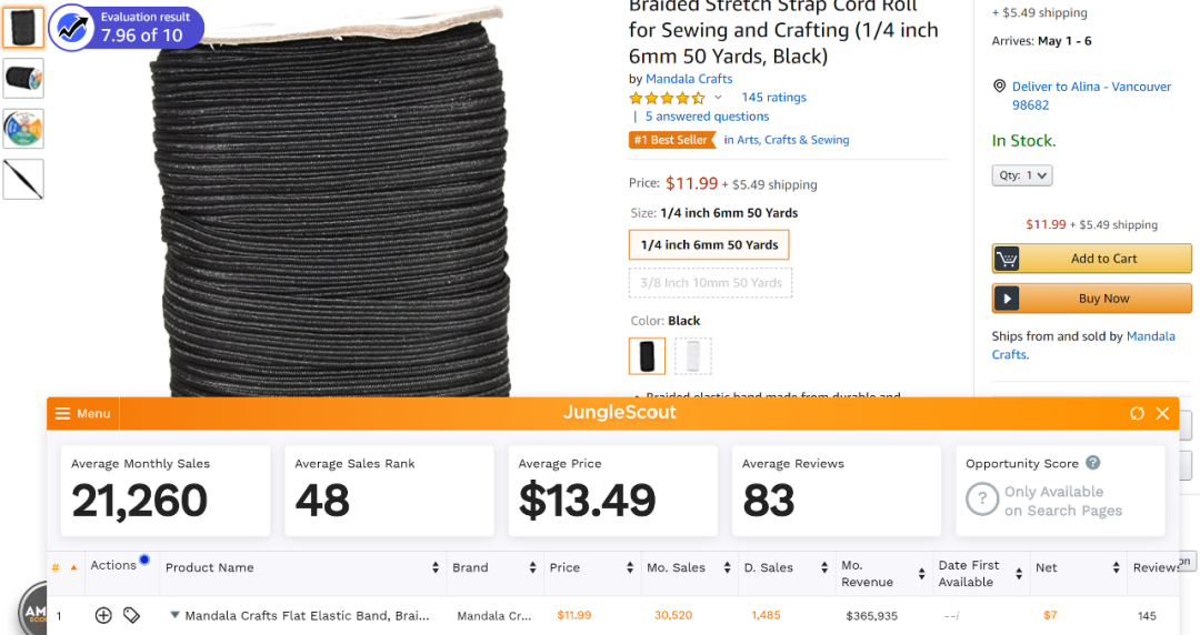 松紧带,四张非常简单的图片,100多个review,然鹅日销1500个,占据了整个Arts & Crafts类目第一名