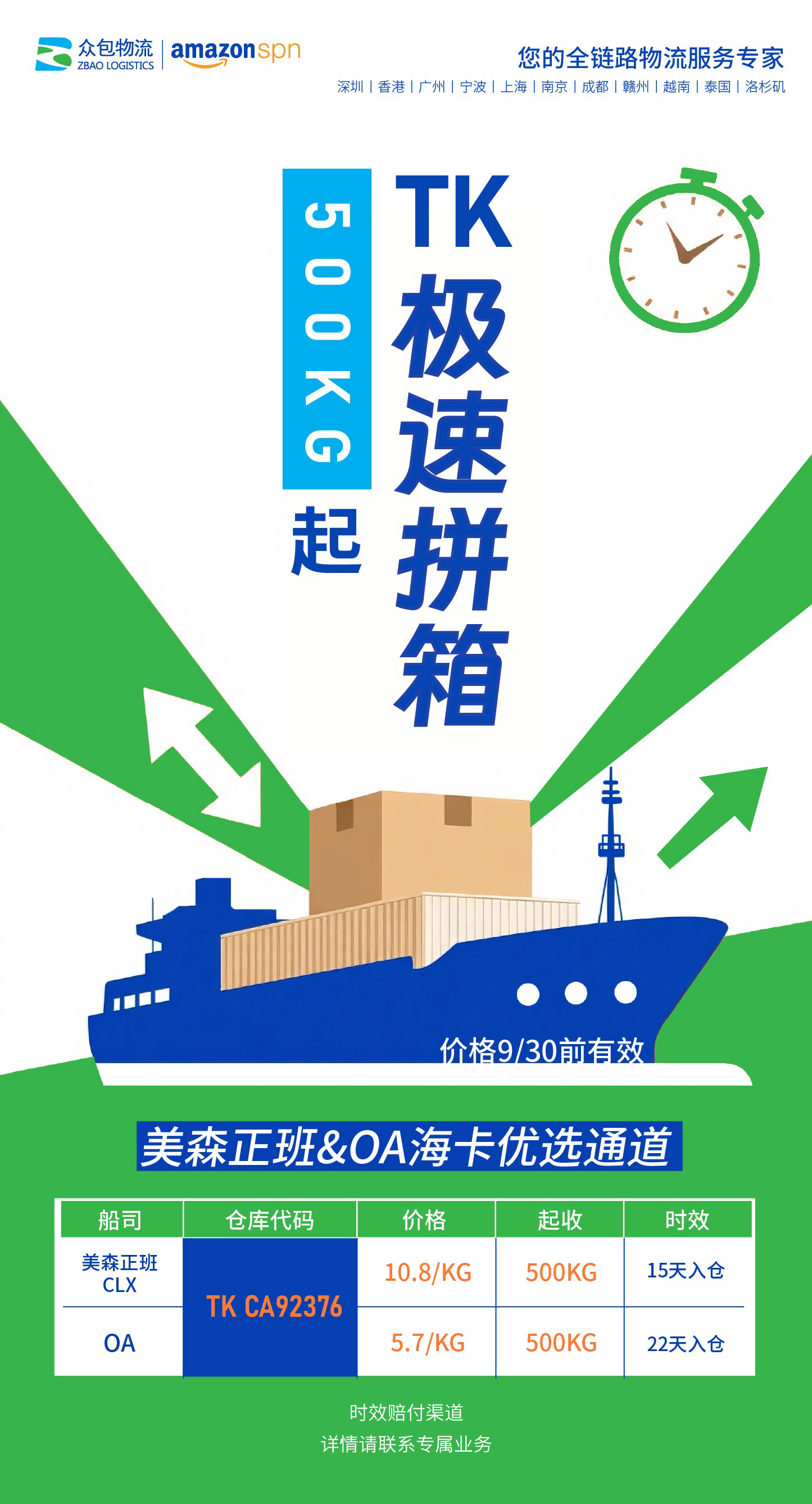 其中,TK大促期间,头程海运拼箱500KG起就能拼!