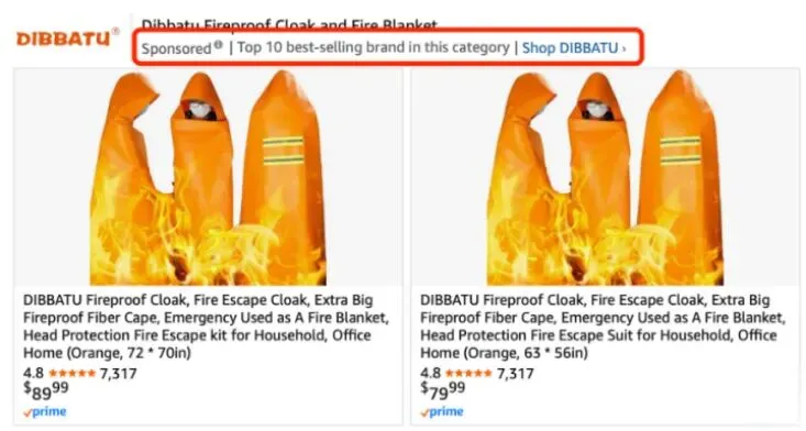 在部分关键词搜索结果的第二屏,新增了大面积展示的 Sponsored 广告板块,板块内明确标注 “上个月该品牌1万+销量产品”。