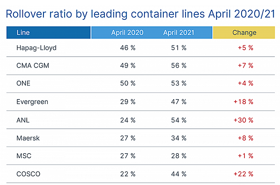 据了解,有港口四月份甩柜率甚至超过了64%,航运公司的甩柜率更是高达56%。