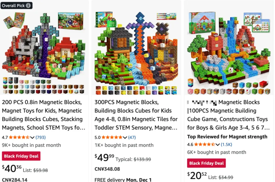 随着游戏《我的世界》(Minecraft)在全球的持续火爆,周边的玩具需求一直非常旺盛。磁力积木本身是一个很好的益智玩具类目。当你把“磁力积木”和“Minecraft”结合在一起时,销量确实会爆发。