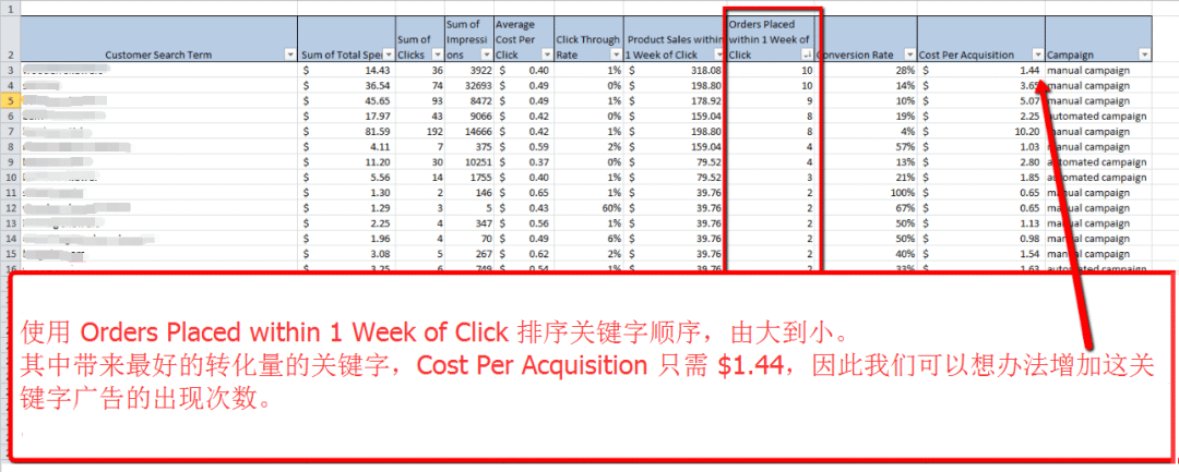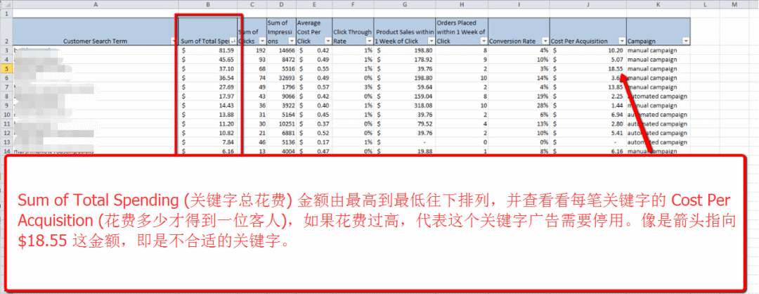 关键字绩效报表整理好后,我们即可开始抓出 高点击、高转化 的关键字,并排除产生高广告费、低转化的低效率关键字。
