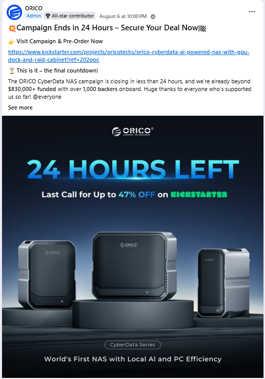 在这一背景下,深耕存储领域16年的中国品牌ORICO(奥睿科),携旗舰产品CyberData AI NAS登陆海外众筹平台Kickstarter,通过众筹的方式向全世界的Backers发布这款革命性新品,上线30天共获得1184位Backers购买,总筹款金额达到95万美金!