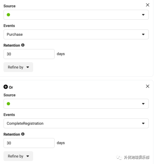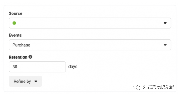 你也可以为这些活动创建个人网站自定义受众。下面是过去30天内购买事件的网站自定义受众例子。