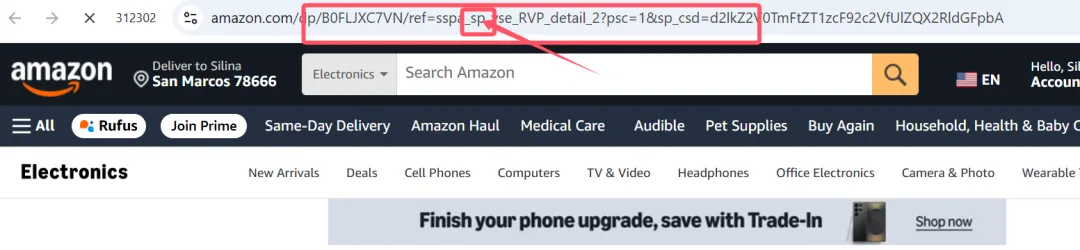 点到这个产品上面,然后复制上面链接,看ref后面的内容,sp代表普通的SP广告。