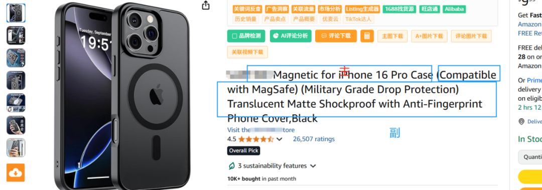 副标题:从广告报表提取高点击低转化词,结合Review中的真实场景词(如客户提及“易碎”→植入“军用级防跌落保护”)。