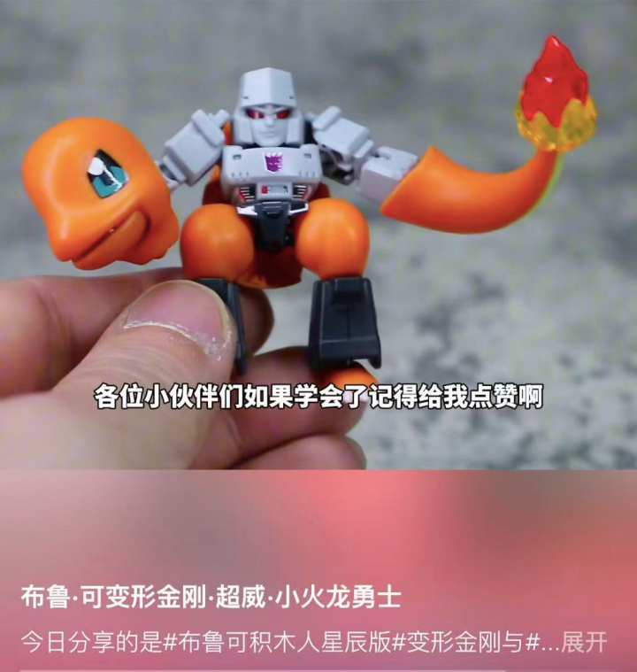 尤其是《起源》,布鲁可不仅推出同款玩具,还依照其剧情拍摄了定格动画。凭借拼搭积木的灵活关节和可拆卸特性,布鲁可玩具能还原更多电影中的名场面,尤其是再现威震天“手撕”御天敌一幕。