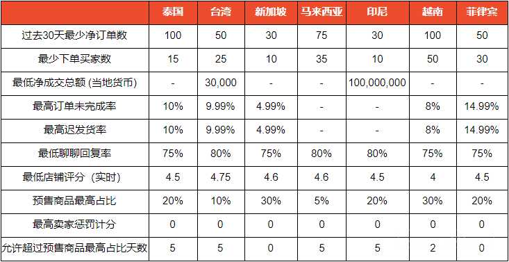 5. 新加坡、越南、印尼站点优选卖家移除标准: