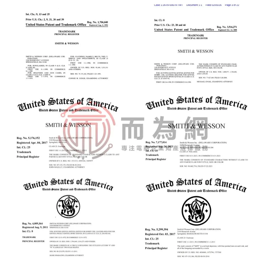 【侵权快讯】26-cv-679 隐匿案件曝光!美国枪械品牌SMITH & WESSON多个商标发案维权!
