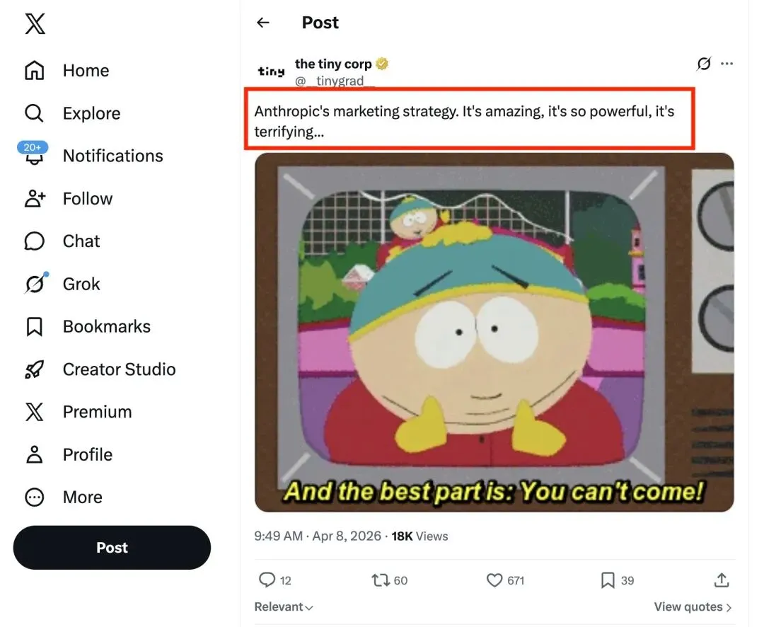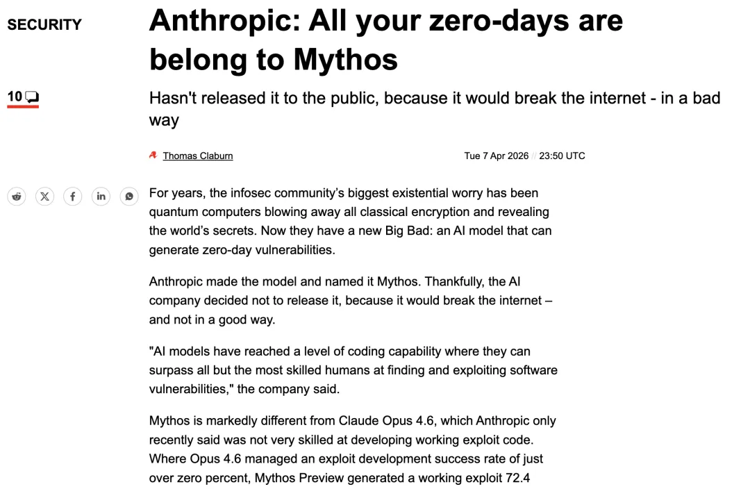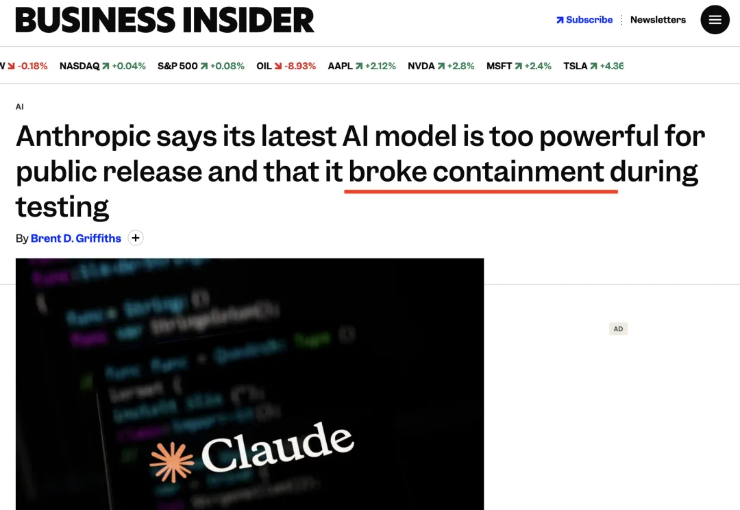 各位……如果 Mythos 的能力,真的如传言中这么神。神到 A 社都不敢放出来,只敢给少数几家公司用,而且表现出来的态度是: