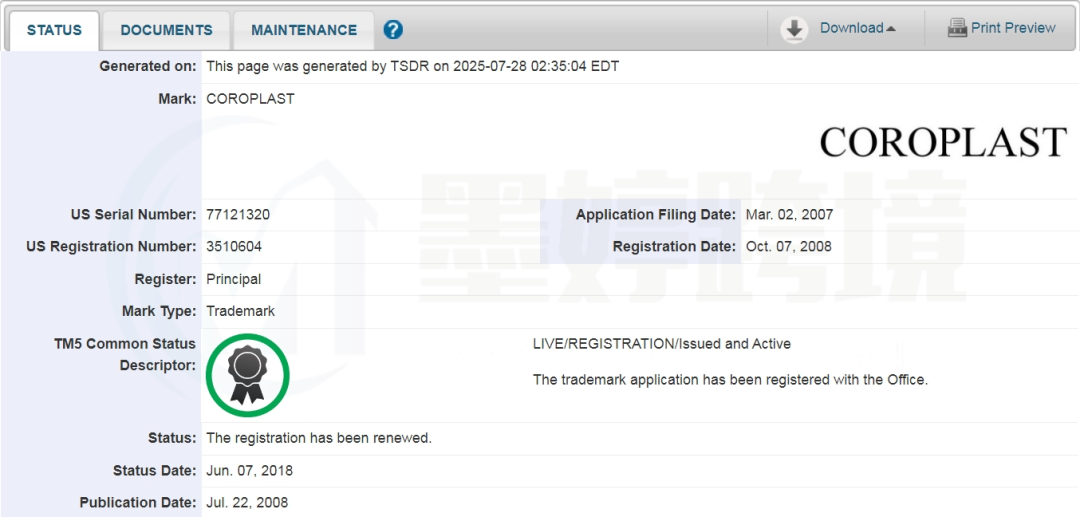 本案为商标侵权,涉及原告旗下1个商标词,维权关键词:COROPLAST;注意:未经授权不能随意上架销售,侵权风险极大!