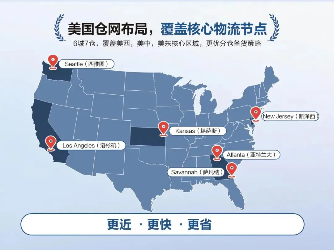 全美布局 6 城 7 仓自营仓储,总仓储面积达 200 万平方英尺,仓库选址位于北美核心消费区与物流枢纽,覆盖美西、美中、美东全区域,实现北美本土仓配网络的全覆盖,大幅缩短物流时效,提升北美终端客户的购物体验。
