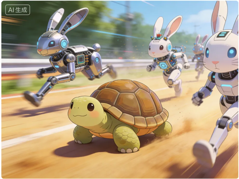 但也可能是,你的产品就是不那么受欢迎,所以转化率怎么调整都不会变高。你想着只要不亏,就慢慢龟爬,等着周围的竞品兔子们打盹儿再反超。殊不知,你的竞品兔子们,现在已经进化成不知疲倦的AI兔,或者机械兔。你永远也追不上狂奔中的兔子们。