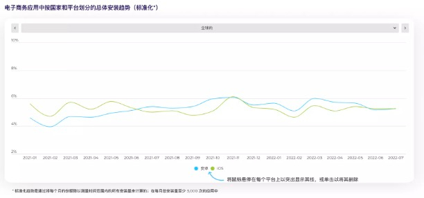 根据报告,疫情红利消失是购物APP安装和使用量下降的最大因素,但一些新的因素,如乌克兰战争、供应链中断、不断上升的通货膨胀和经济衰退风险加剧也在发挥作用。