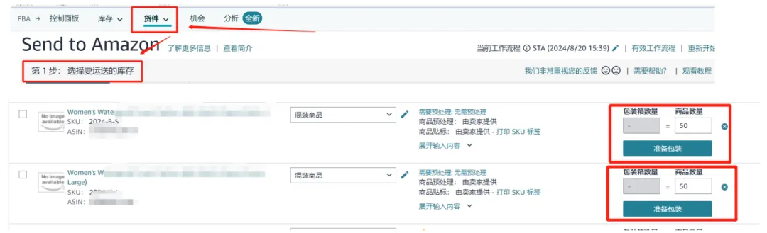 第一步:选择要运送的库存