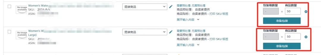 每个SKU至少准备5个相同的纸箱或托盘。